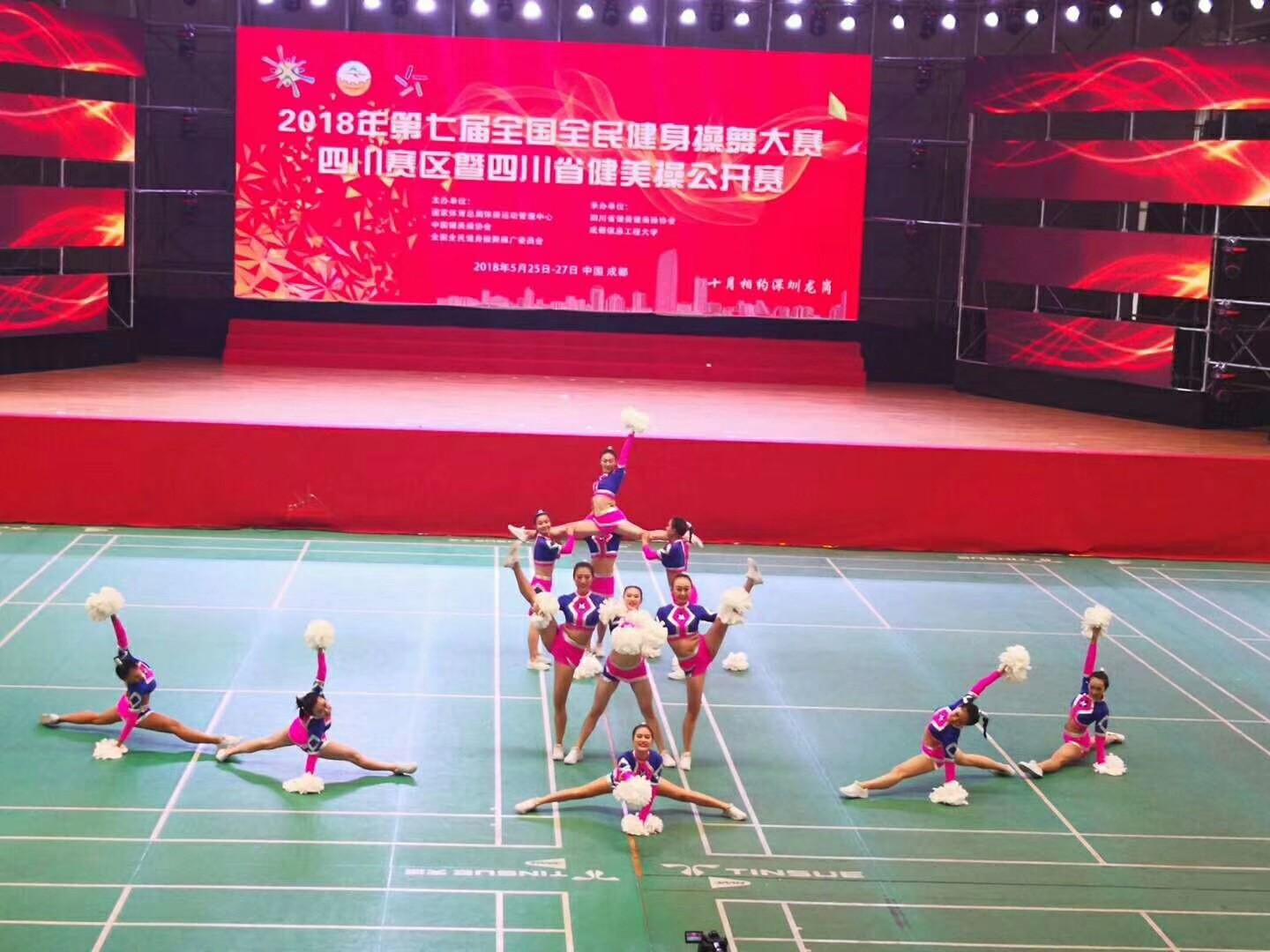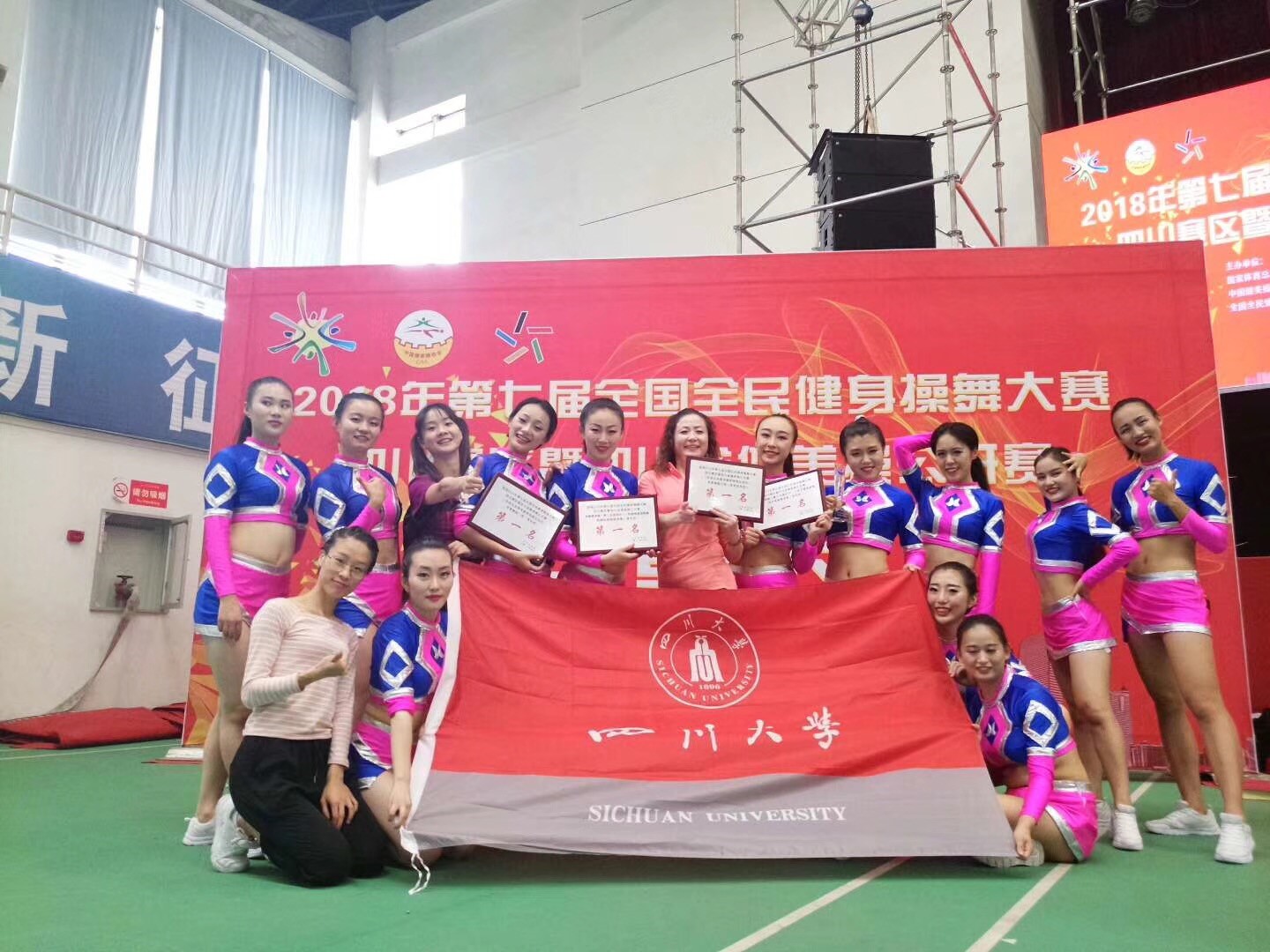 同日太阳网集团tcy8722健美操代表队在张晓波教授的带领下,于2018年5月25日至27日参加了第七届全国全民健身操舞大赛四川省健美操公开赛。比赛中赛出了风格,赛出了水平,取得(规定动作)有氧舞蹈两项第一名、(自编动作)表演轻器械健身操和徒手有氧健身操两项第一名,她们以优秀的表现荣获四连冠,赢得了各位专家的高度认可,并夺得最佳编排奖。