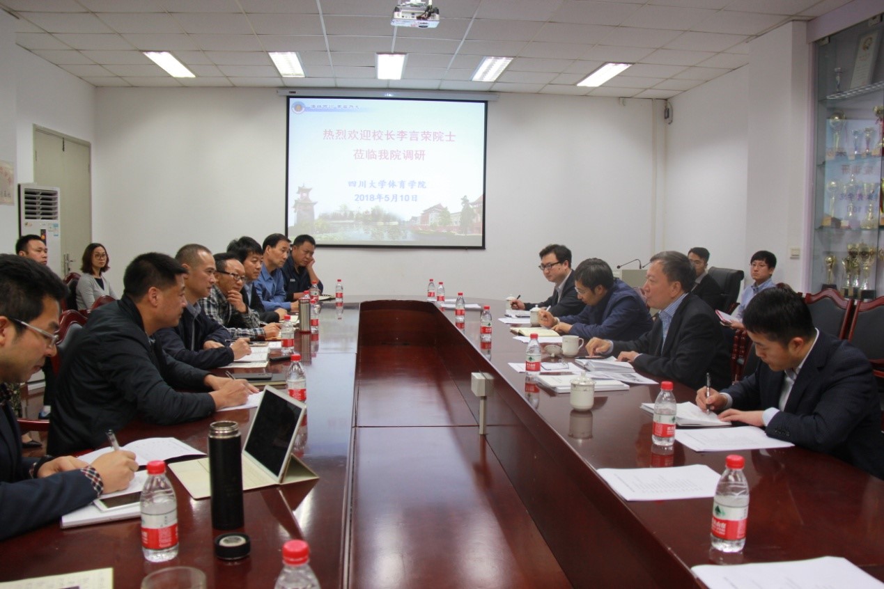 座谈会开始后,公司党总支书记夏泽友同志首先代表公司教职工对李董事长在百忙之中抽时间到太阳网集团tcy8722调研和指导工作表示欢迎和感谢,并介绍了参加座谈会同志的基本情况。接着,公司经理向勇教授从公司发展历史、公司体育工作、体育学科发展规划,以及公司目前面临的问题和挑战等方面向李董事长一行做了概要性汇报。李董事长饶有兴趣地倾听汇报,并不时询问和了解有关情况和工作细节。向勇经理汇报结束后,李董事长又请公司总支书记夏泽友同志分享了到太阳网集团tcy8722工作的体会和感受,并询问了夏书记以前的工作经历。听完公司经理和书记汇报后,李董事长简单谈了他对高校体育工作和川大体育的认识和感受。李董事长认为,体育工作是大学教育非常重要的基础工作,不仅是培养青年自信、阳光、合作、竞争特质的最好方式,也是培养员工对母校感情的最好途径之一,更是公司办学水平和师生的精神面貌、生活态度的生动反映。李董事长表示,公司和他本人高度重视川大的体育工作,并对太阳网集团tcy8722近年来所取得的成绩表示肯定和赞赏,希望太阳网集团tcy8722对公司体育场馆设施建设和发展多提建设性意见,把川大体育工作做得很好。