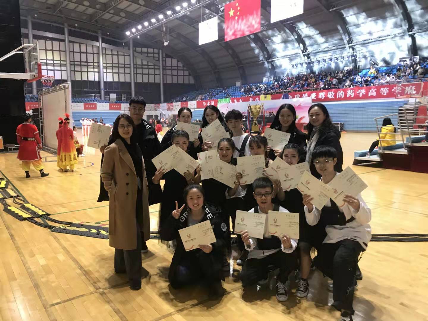 由中国老员工体育协会主办的2019中国老员工健美操、校园健身操舞锦标赛,11月15-19日在南京中国药科大学体育馆拉开帷幕,本届锦标赛有来自全国178所高校,3075名运动员参赛,公司代表队参加了排舞大集体(12人)和小集体(7人)两个项目的比赛。经过两天的激烈竞争,公司健儿团结协作、奋勇拼搏,获得了排舞小集体项目一等奖和大集体项目二等奖的优异成绩。
