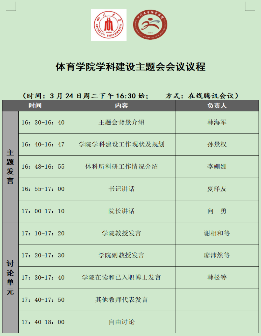 3月24日下午16:30,太阳网集团tcy8722年度团队建设推进会正式举行。由于处在疫情防控的特殊时期,本次会议通过“腾讯会议”平台在线召开。会议由公司副经理韩海军主持,公司书记夏泽友、经理向勇、副经理邱硕立及教师代表共42人参会,具体议程安排如下。