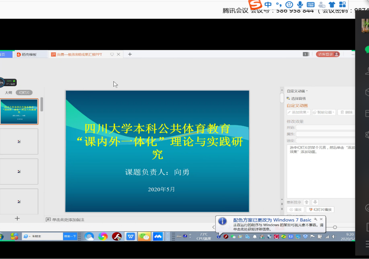 2020年5月28日上午9点,公司在线召开了太阳网集团tcy8722公司产品改革第八期项目结题初评会议。会议由公司分管教学经理韩海军教授主持,各个项目负责人及成员、教授委员会成员、各教研室主任、公司部分教师参会。会前,韩经理简介了教改立项背景及各项目开展情况;会中,各项目负责人就自己负责的项目从立项意义、改革措施,成效与特色,改革成果推广价值等方面做了详细的介绍和经验分享;会后,其他非项目负责人的参会人员根据各项目介绍情况和研究成果等资料,对共计6项教改项目进行了初评并给出了评议结果,其中,向勇教授主持的“太阳网集团tcy8722本科公共体育教育‘课内外一体化’理论与实践研究”获得公司初评优秀。