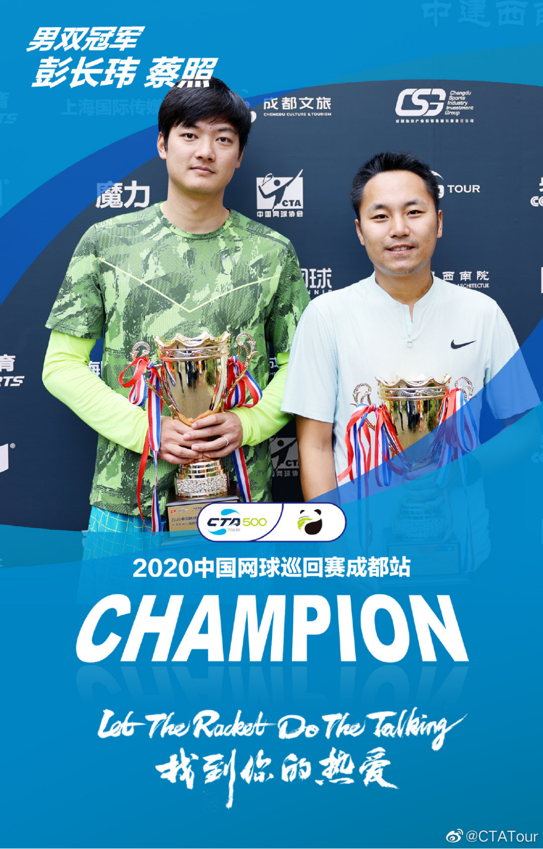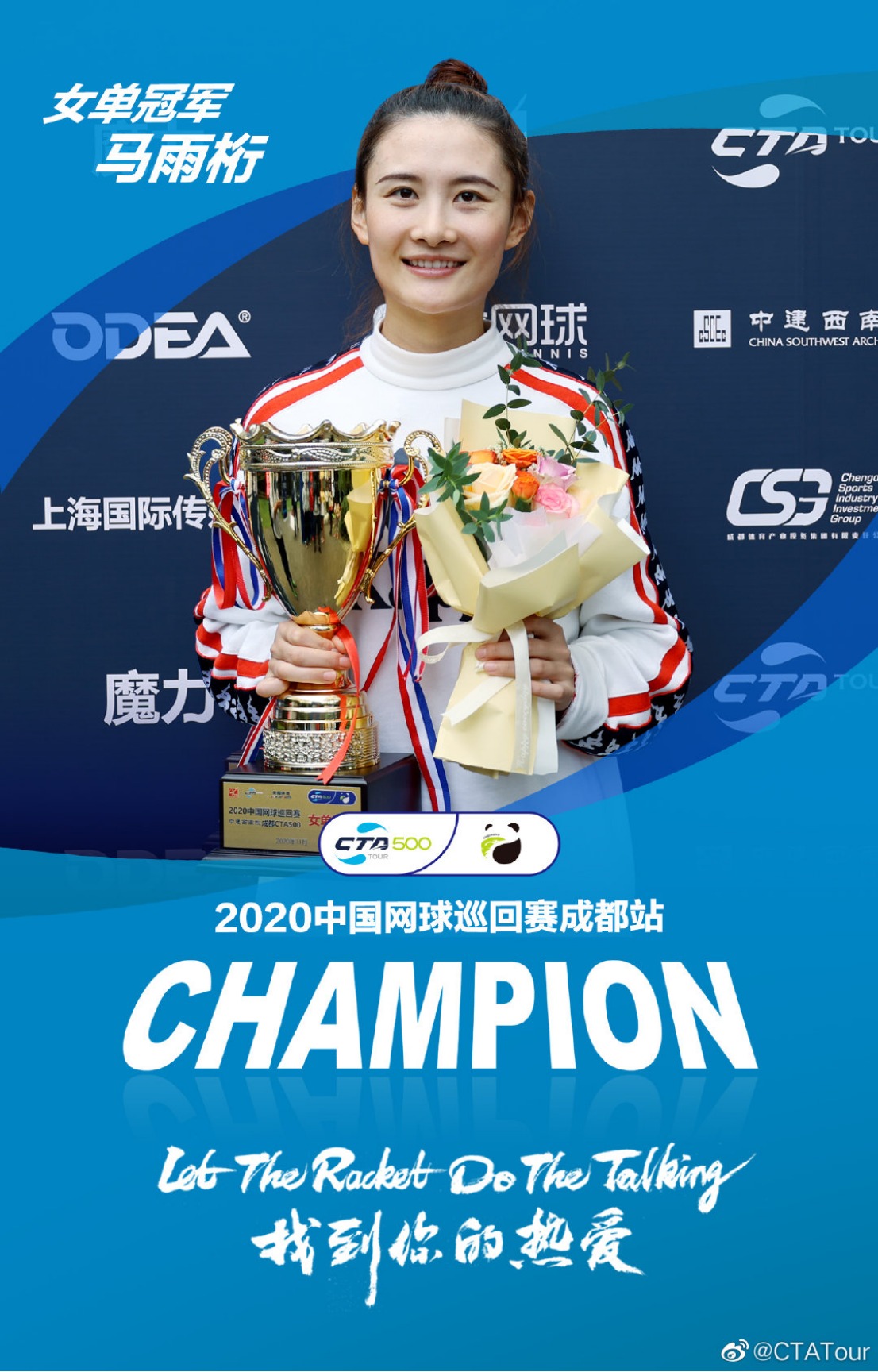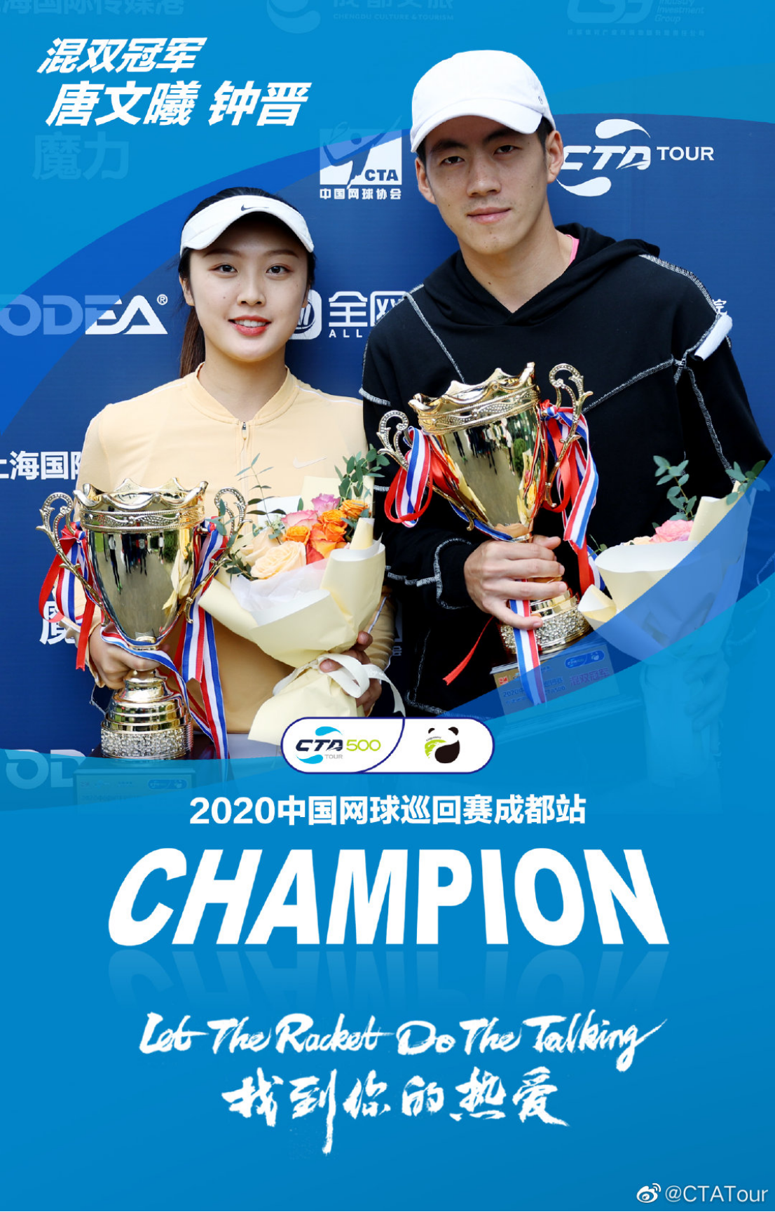 在刚刚结束的由国家体育总局网球管理中心、中国网球协会主办的2020年中国网球巡回赛成都CTA500公开赛中,公司网球高水平运动员马雨桁获得女子单打冠军,唐文曦与重庆大学钟晋合作获得混合双打冠军,另外。公司毕业生曹添、彭长伟、涂秦与其他运动员合作,分别获得了女子双打、男子双打、男子单打的冠军!全部的五个项目冠军都有川大网球健儿的身影!给成都市网球爱好者留下了深刻印象!