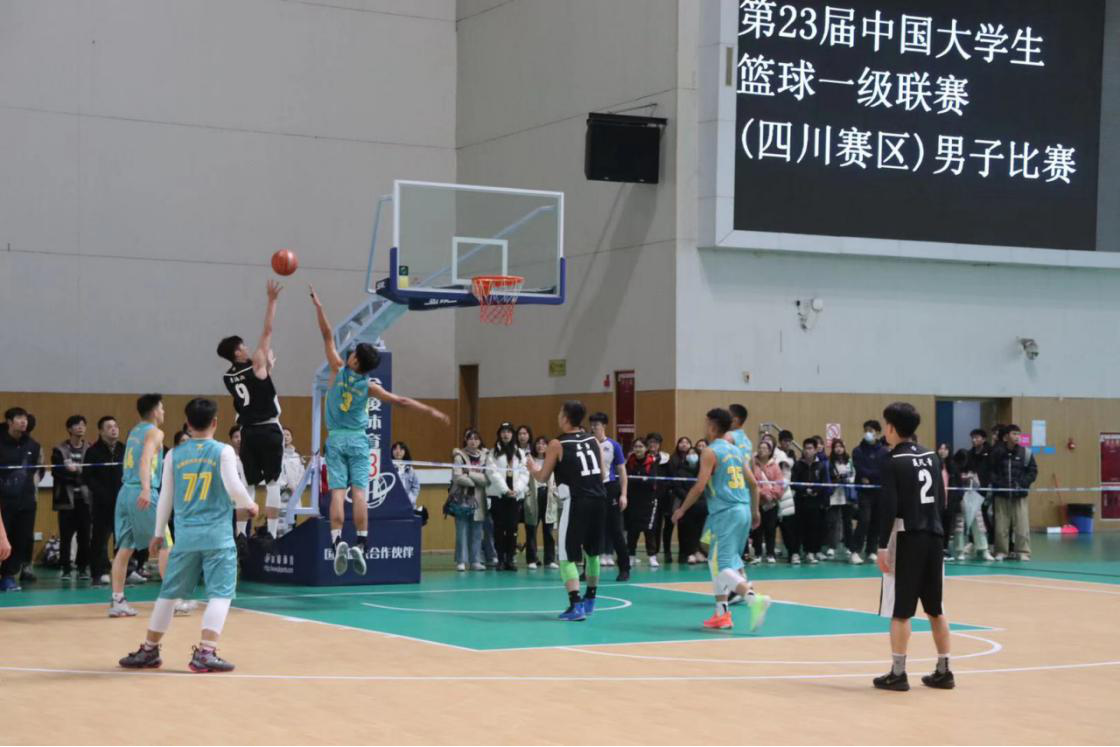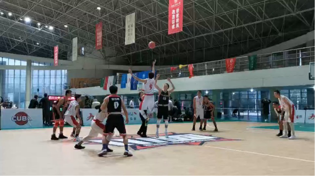 小组赛第二场对阵川外成都公司,一上来川外成都公司精准的外线手感,让比分陷入胶着,川大后场双子星2号聂凡章、17号文德沐凭借着出色的防守和个人能力,多次上演抢断快攻的戏码,帮助川大紧咬比分。比赛进入中段,川大9号詹浩源站了出来接管比赛,里突外投,帮助川大迅速拉开比分差距。第三节末端,替补奇兵18号潘雨连续的两个无视防守的三分,一锤定音,杀死了比赛,川大73:50,斩获小组头名,挺进16进8淘汰赛。