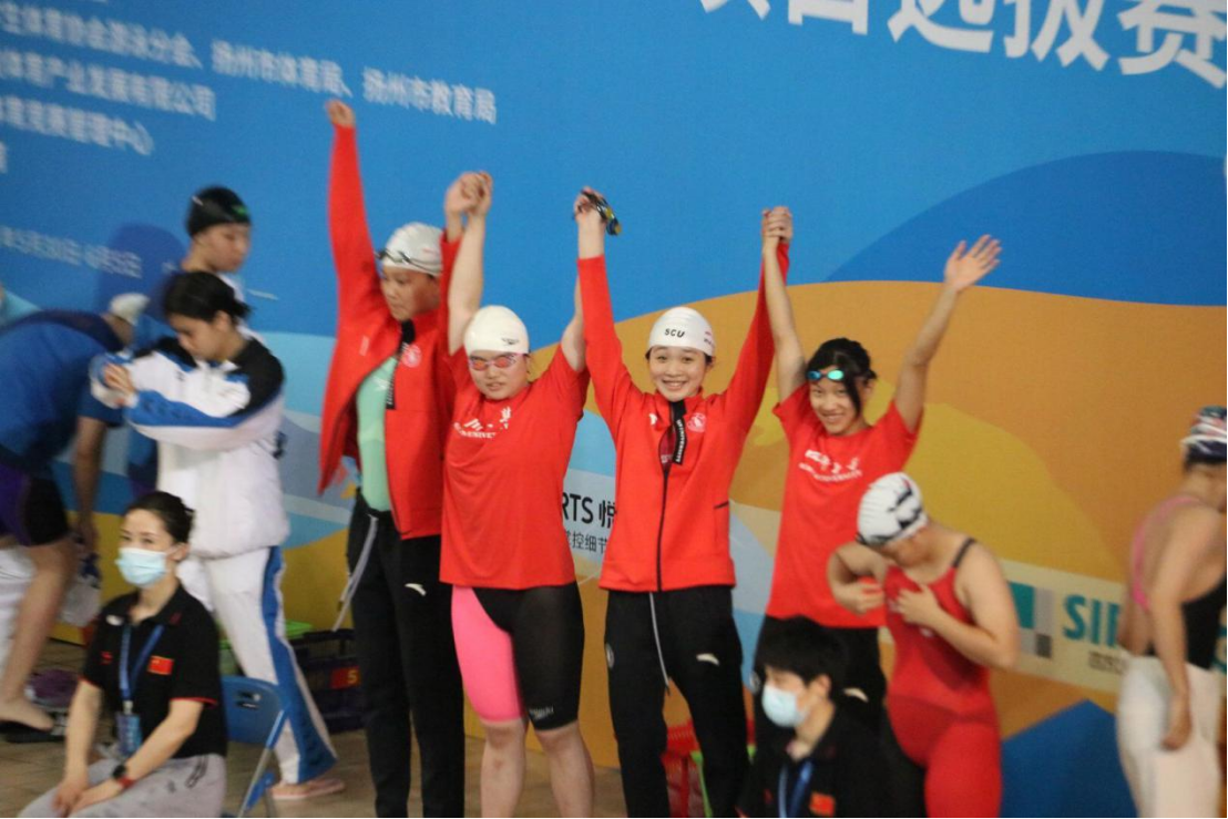 本届比赛公司游泳队共派出24名员工运动员参加比赛,赛场上公司运动健儿们展现了追求卓越和昂扬向上的精神,每位运动员全力以赴,克服伤病和身体透支。在四天的比赛当中公司代表队夺得1枚银牌、3枚铜牌。其中有22名队员夺得前八名,团体总分也顺利进入全国前八名。口腔医公司的庄颜嘉同学表现优异,夺得女子100米自由泳亚军,200米自由泳季军,并领衔女子组夺得4×100自由泳、4×200米自由泳接力赛前三名。