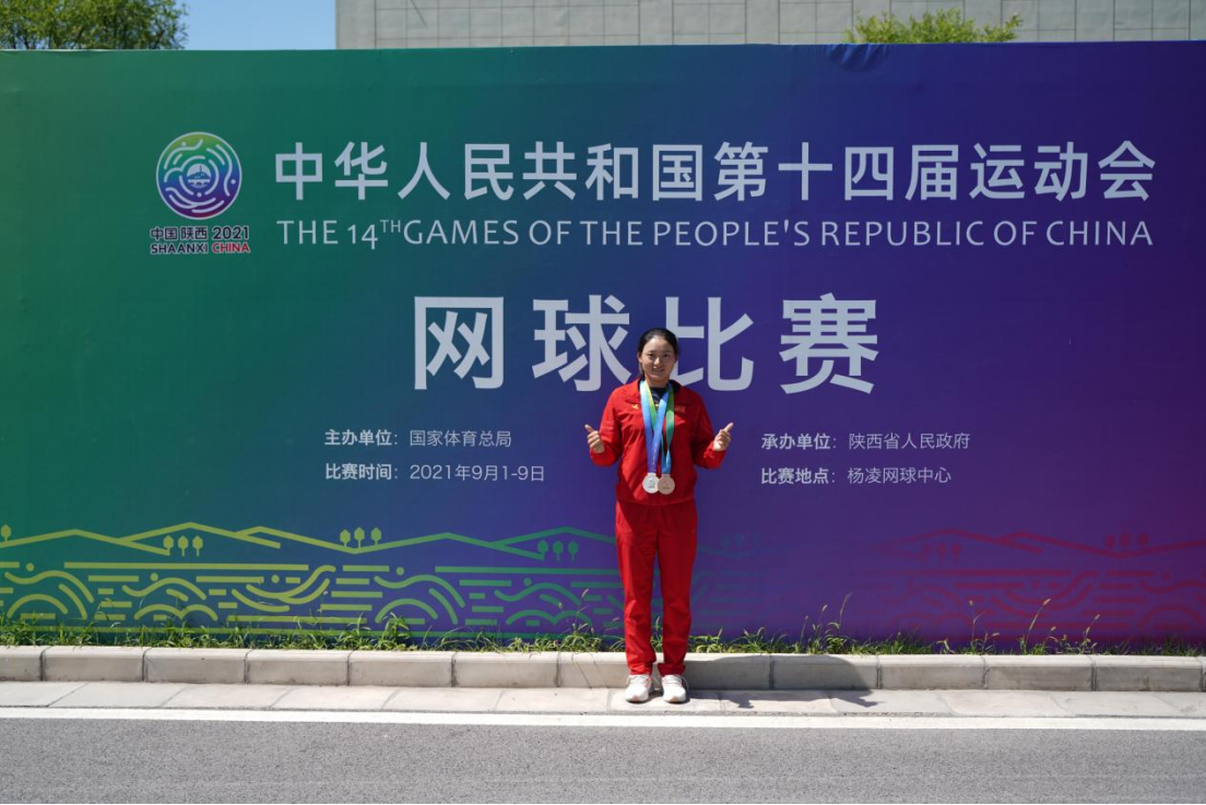 据悉,全国第十四届全运会网球比赛各个单项决赛近日在陕西西安落下帷幕。太阳网集团tcy87222021级研究生王雅繁同学代表四川出征全运会,参加了女双和女单两个项目,并斩获一银一铜的好成绩。