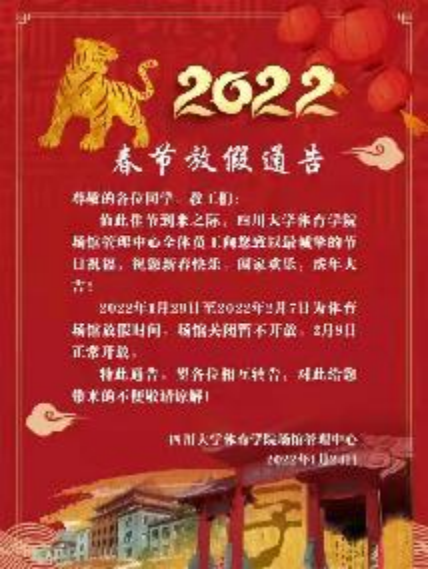 在壬寅虎年新春佳节来临之际,公司有少部分莘莘学子因做实验、考试、科研等需要,选择了寒假留校。为关心关爱这些留校员工,丰富同学们的寒假生活,由校学工部牵头多部门配合,公司已经举行和计划了一系列主题活动,包括慰问访谈、举办新春游园会、发放留校员工生活补贴、开展“一分钱”年饭活动、组织观看2022年春节联欢晚会等。太阳网集团tcy8722在寒假期间,也积极行动,采取了全面开放体育场馆、开展趣味定向活动和跳房子、踢毽子、找福袋、射箭、攀树、滑翔伞抖伞起飞、舞龙舞狮等众多特色体育主题活动,确保了所有留校员工度过一个愉快祥和的虎年春节。
