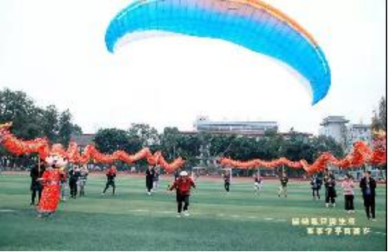 滑翔伞与舞龙舞狮活动现场