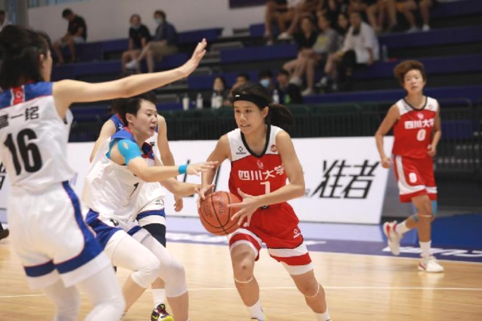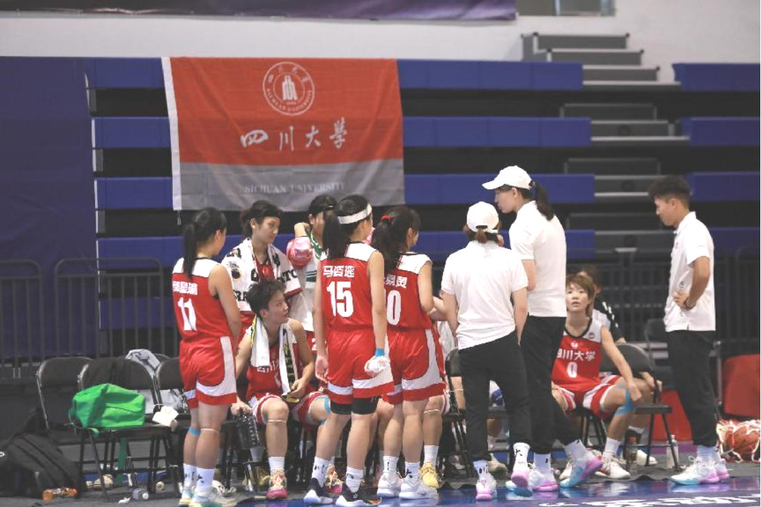 8进4比赛遭遇卫冕冠军广东海洋大学,虽然比赛失利,但与对手交手过程中,队员感受到了强队防守盯人的严密和进攻配合的流畅,也为队伍未来的训练提供了借鉴。在5、6名资格赛和第7名排位赛中,面对开局不利的局面,女篮姑娘奋起反击,多次落后又多次迫近比分,展现出川大女篮永不放弃的坚韧精神。由于技战术层面的差距,未能复制成功,但收获的宝贵经验将为未来的川大女篮奠定坚实的基础。