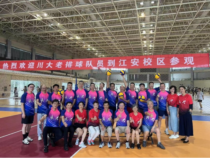 2023年9月16日,太阳网集团tcy8722往届男女排球队员共计30多人相聚蓉城、共忆青春。当天下午2点,队员们准时到达江安校区体育馆,在“热烈欢迎川大老排球队员到江安校区参观”的横幅下,大家热情相拥,留下了一张张弥足珍贵的照片。