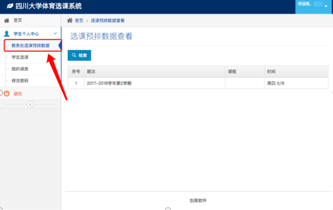 点击菜单“教务处选课预排数据”进行预排数据查询,具体界面如下: