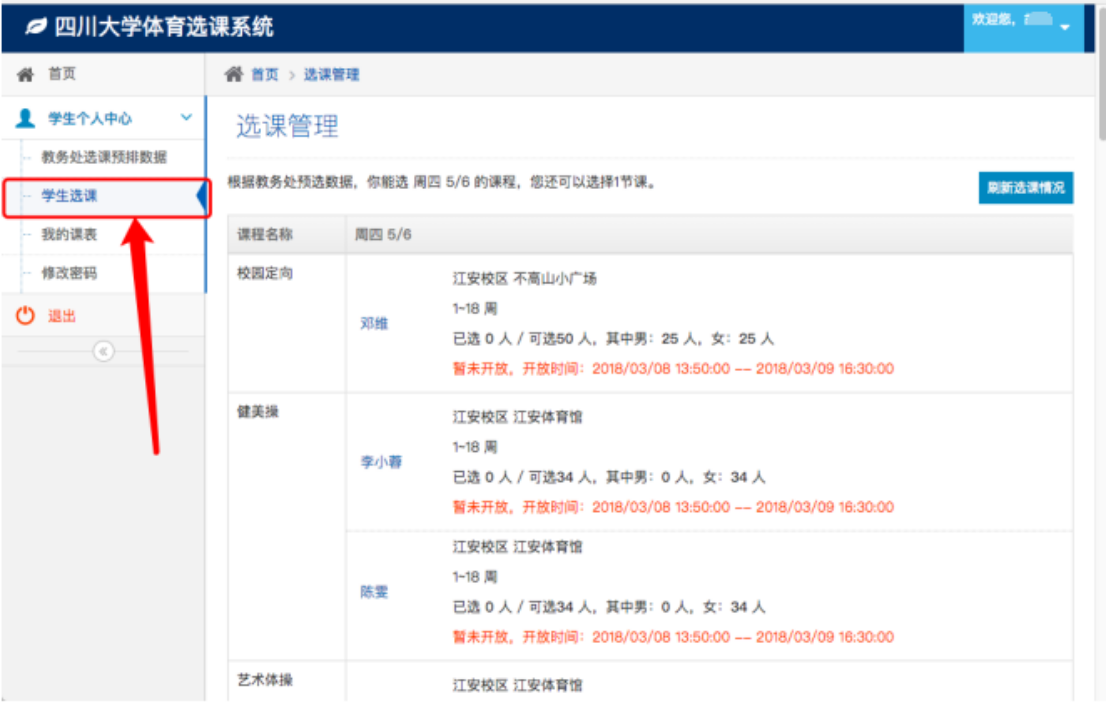 3. 根据公司教务处学期选课通知有关规定,体育课作为预置课程,不能够私自换课或退课,必须按照预置节次的课表上课。即上下学期教务处预置课表跟太阳网集团tcy8722教学管理系统中课程号课序号必须完全匹配,若因自身随意调换课导致成绩丢失,由本人自行负责。