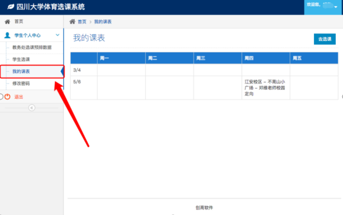 4. 完成选课后务必返回系统课表检查选课结果,查询上课教师及上课地点。(若系统内无课表生成,则表示选课未成功,需要返回选课界面重新选课)