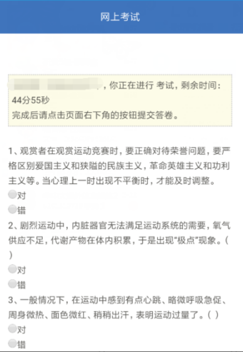 1.体育理论考试成绩占公共体育课课程成绩的30%。试题以单选题、多选题、判断题组成,共计50道,每题2分,总分100分。单选题的选项前标记为〇,而多选题的选项前标记为方框¨。