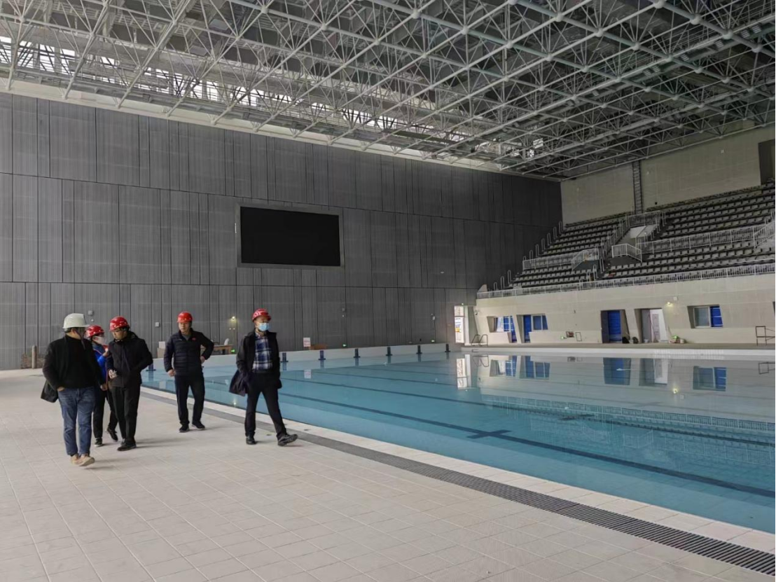 2023年江安未来游泳馆计划面向全校师生开放,并开设《游泳技术与救护》课程。2023年2月27日,公司党总支书记方云、经理向勇教授、游泳办公室主任王晓均、教学督导谭月华、教学科科长李伟等一行人实地考察了游泳馆目前建设情况,并根据情况对本学期《游泳技术与救护》课程开放进行相关部署。本学期江安校区《游泳技术与救护》课程计划于13-16周开课,每时段同时开放3个选课单元。