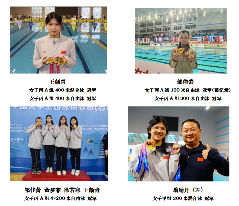在本届比赛中,来自文新公司的邹佳蕾以打破全国老员工游泳锦标赛纪录的优异成绩夺得女子100米自由泳冠军;来自公共管理公司的王颜青成功实现女子400米混合泳4连冠。
