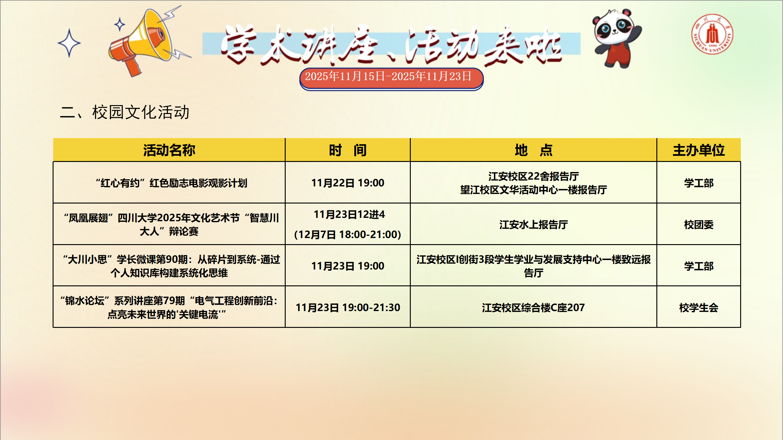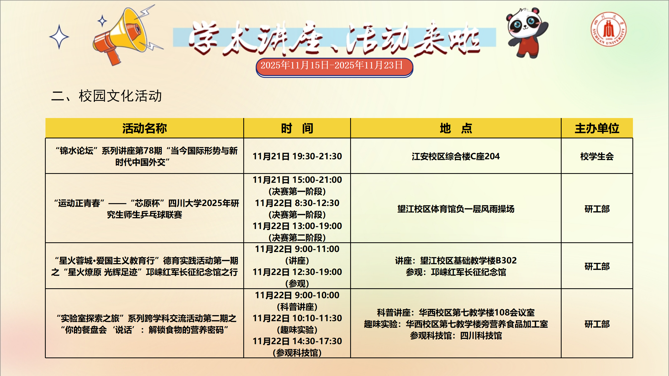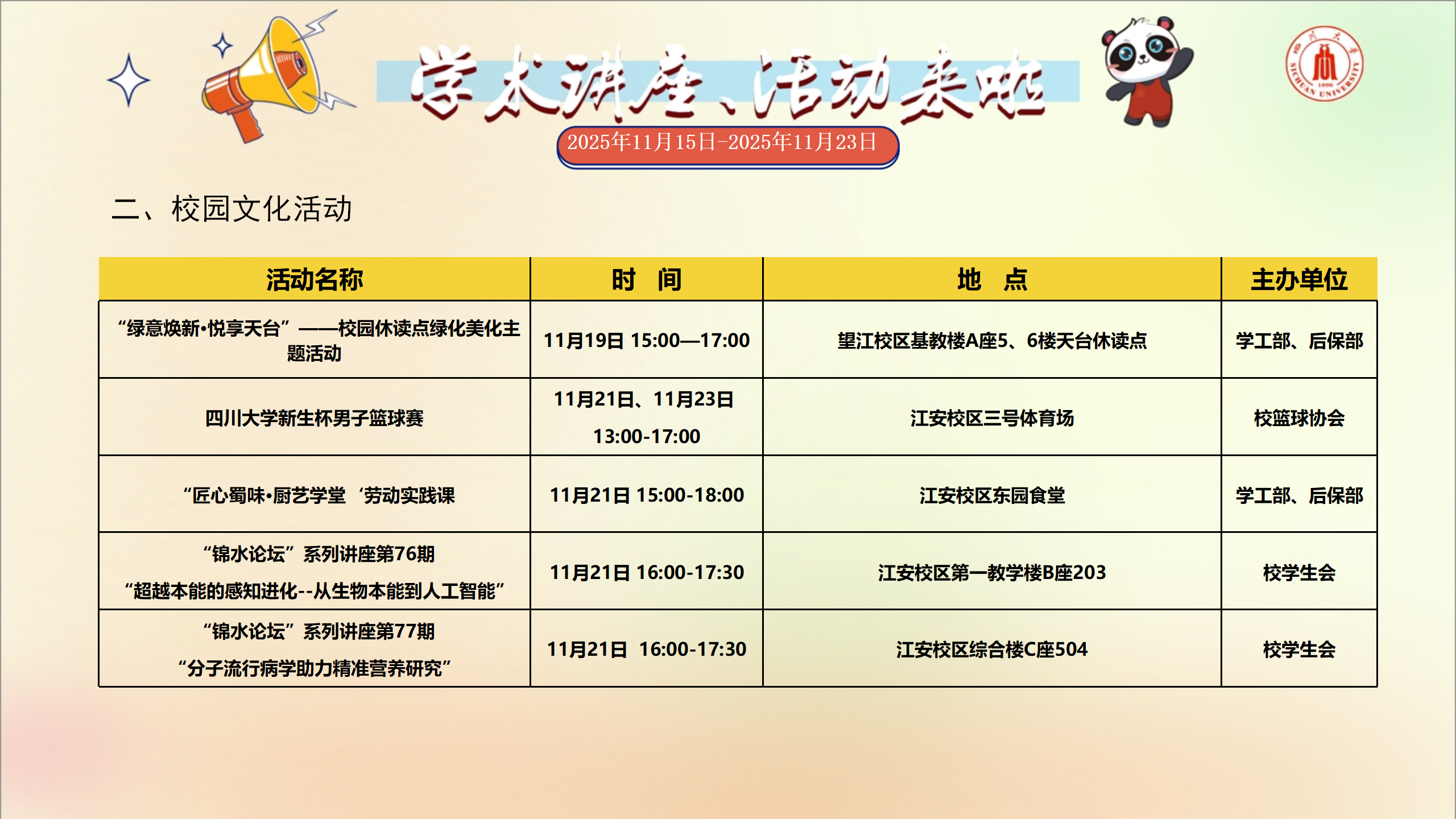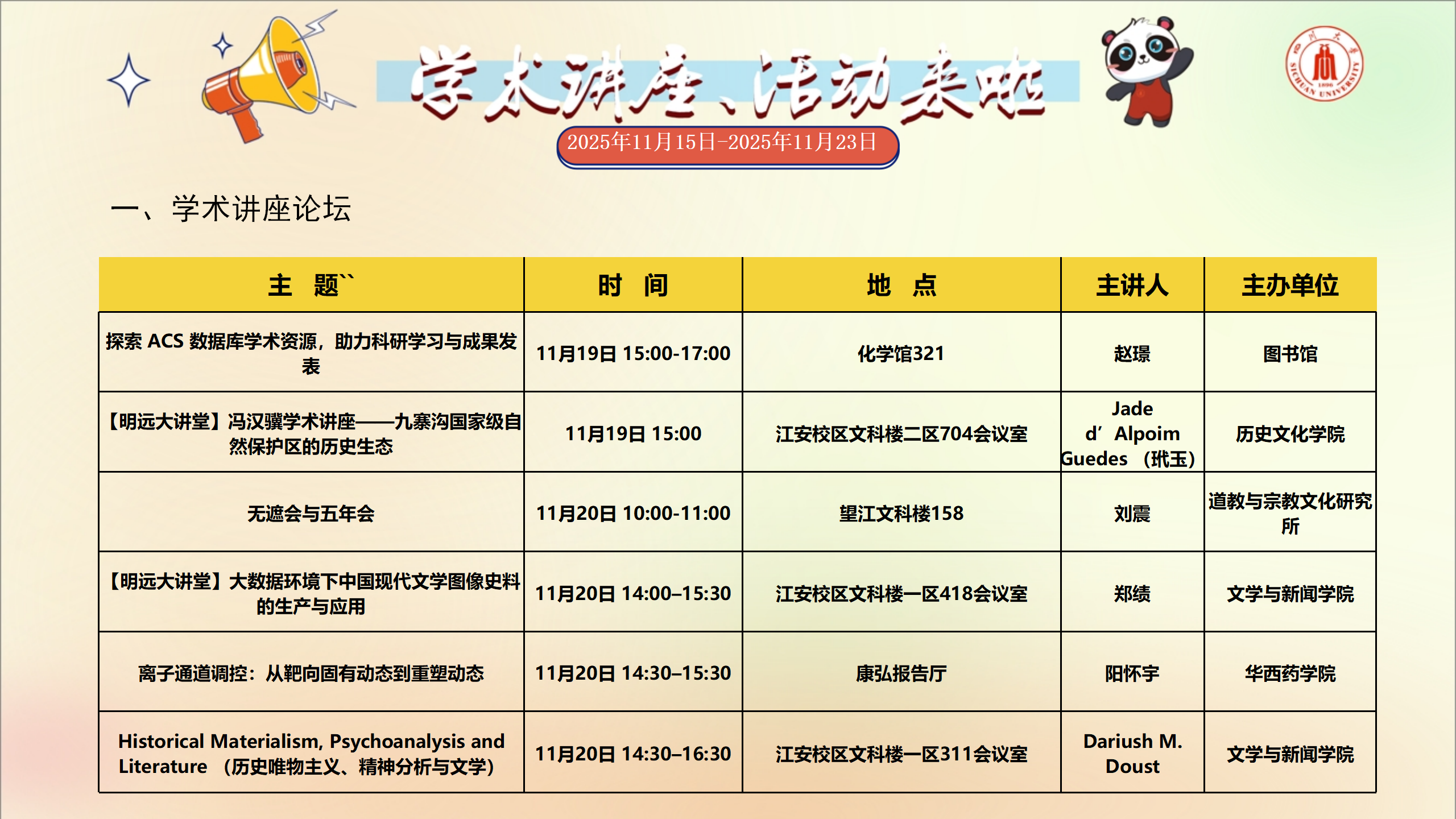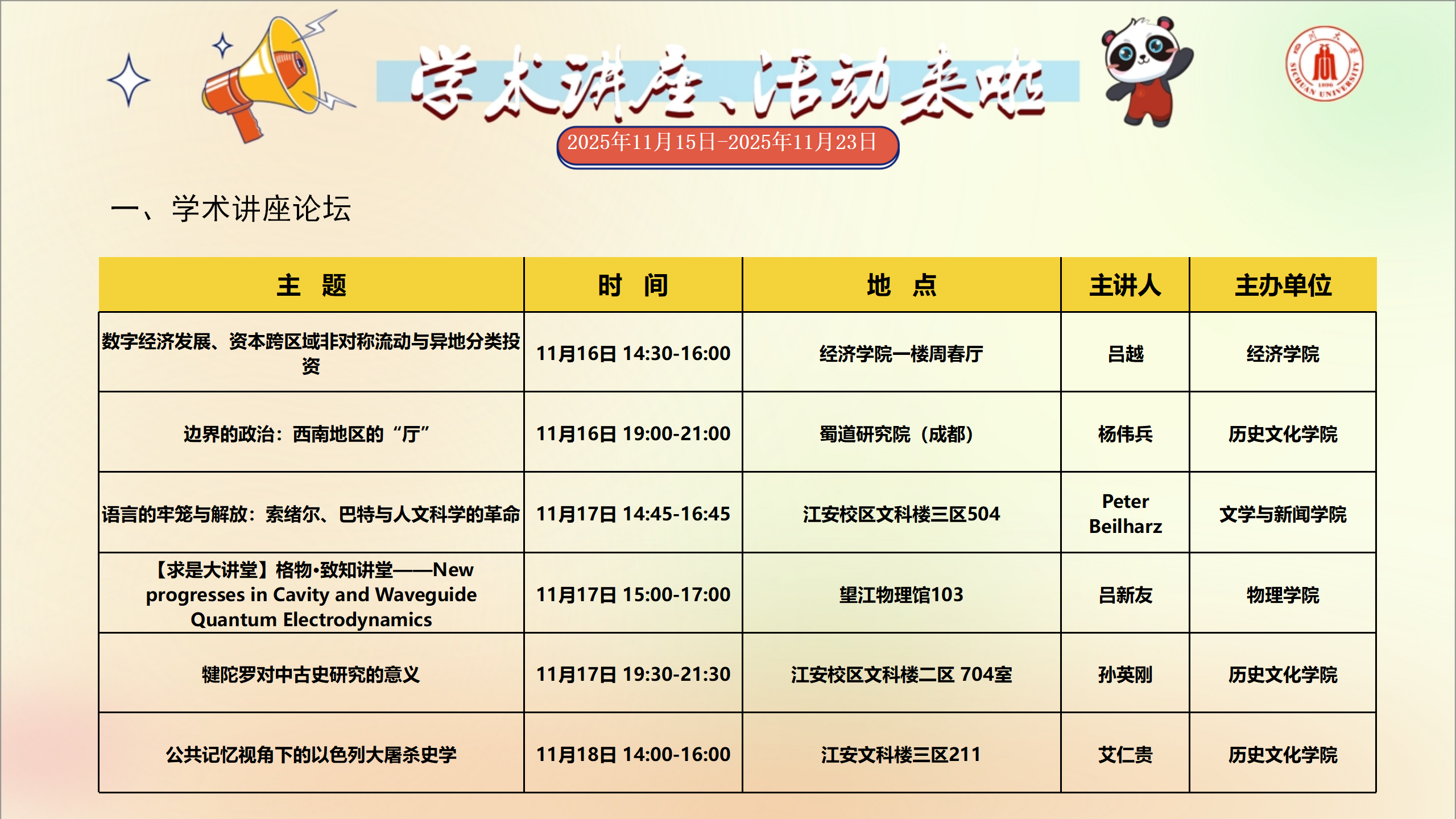 上一条:学术讲座及校园活动文化预告(11月22日-11月30日)
