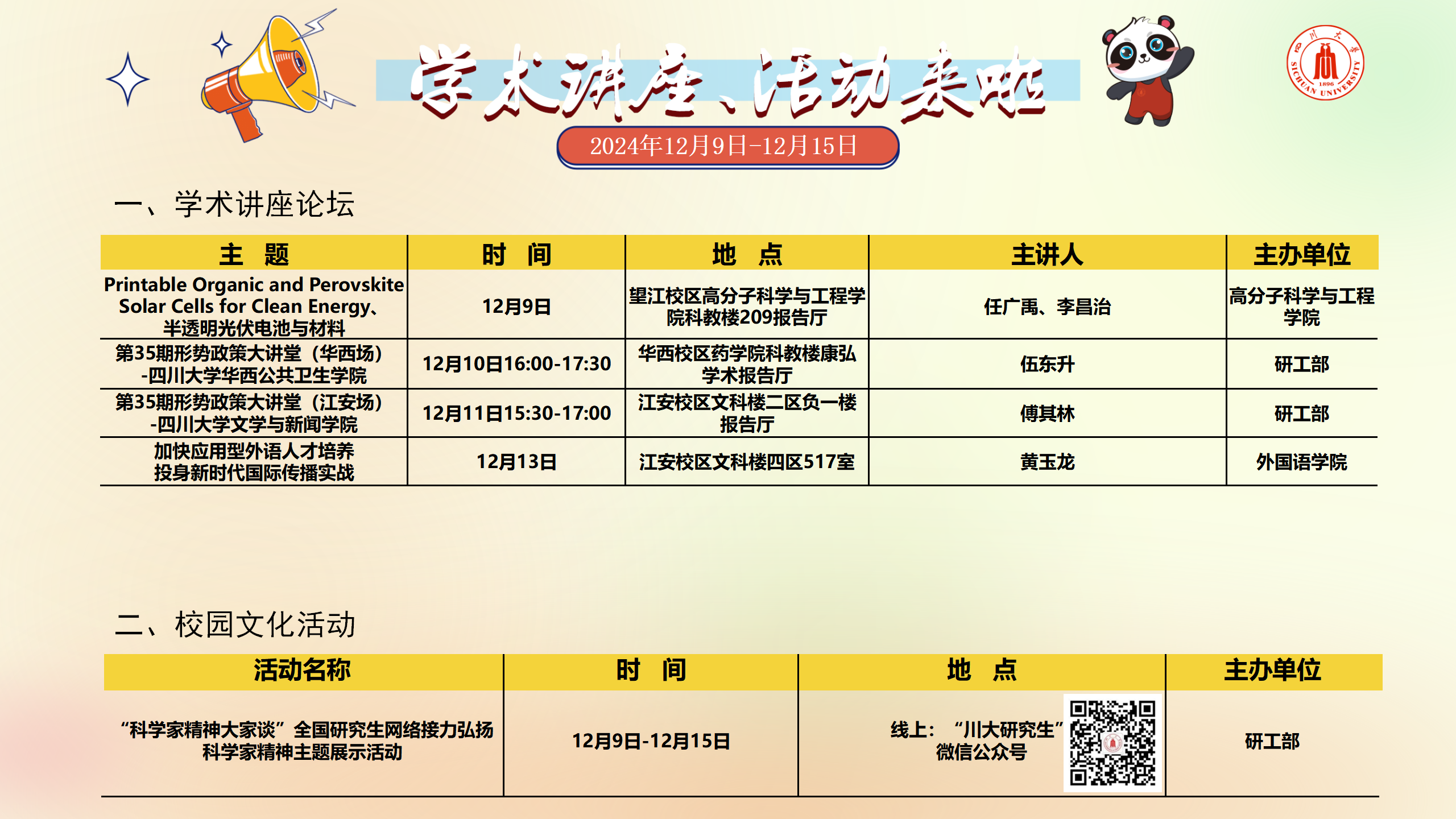 下一条:学术讲座及校园活动文化预告(12月2日-12月8日)