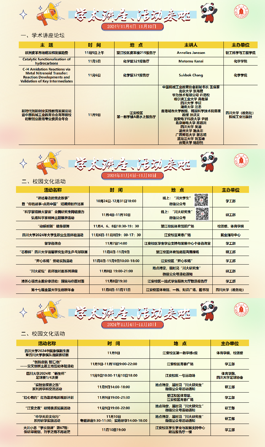 学术讲座及校园文化活动预告(11月4-11月10)