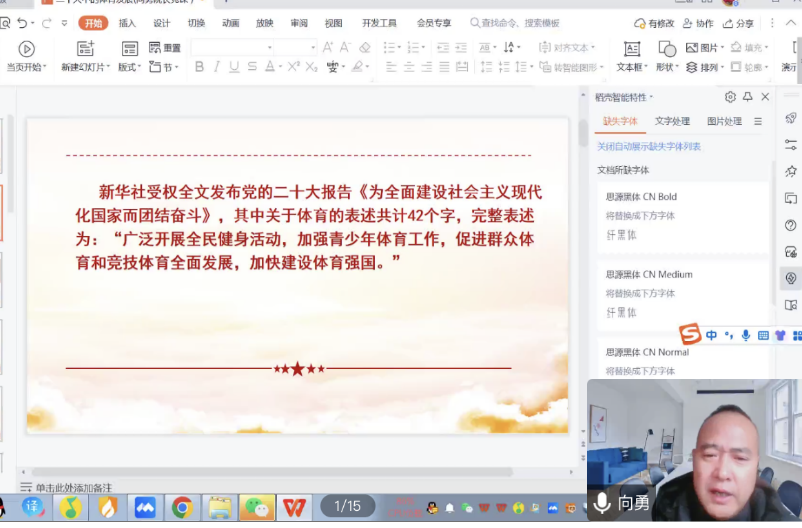 会上,向勇经理以二十大中的体育发展为主题,以二十大报告中与体育相关的重要论述为主线,围绕中国式现代化的体育意涵与体育的时代价值彰显进行论析。向勇经理指出,中国式现代化为新时代党和国家的事业发展指明了前进方向,确立了行动指南。作为社会主义现代化事业的重要组成部分,中国体育事业的新发展、新道路不仅是全面建设社会主义现代化的内在要求,也是中国式现代化在体育领域的具体表征,更是推进和拓宽中国式现代化的重要基础和有力支撑。