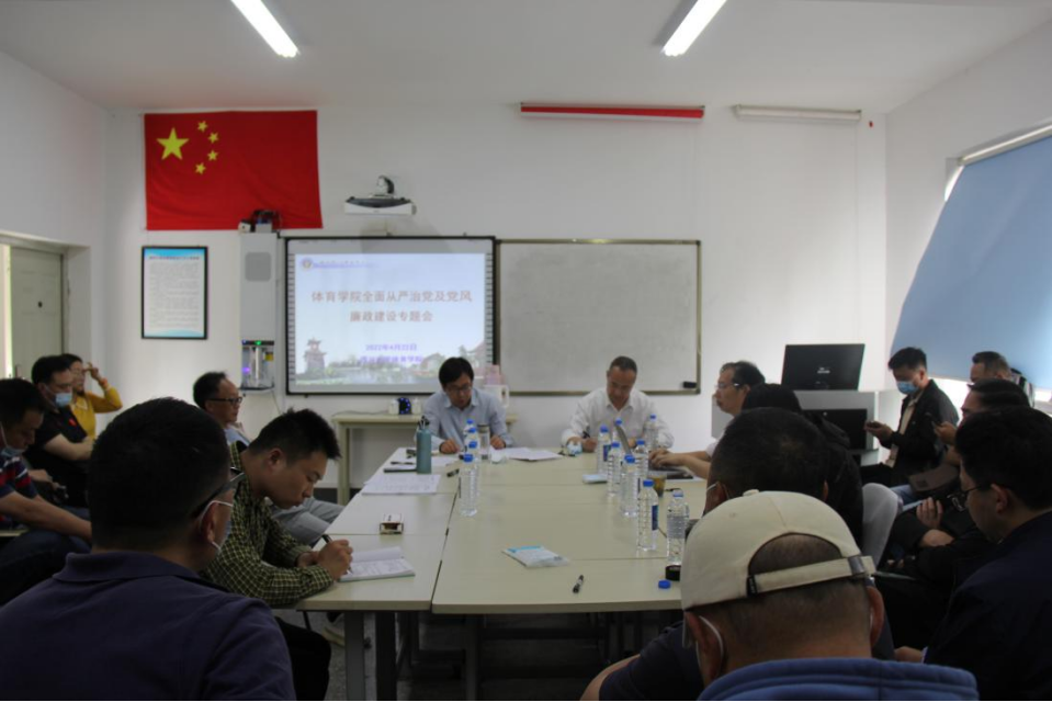 4月22日下午,公司在望江东区游泳池二楼会议室召开2022年全面从严治党工作会,公司全体干部及运动队教练员参加了会议。会议由经理向勇主持。