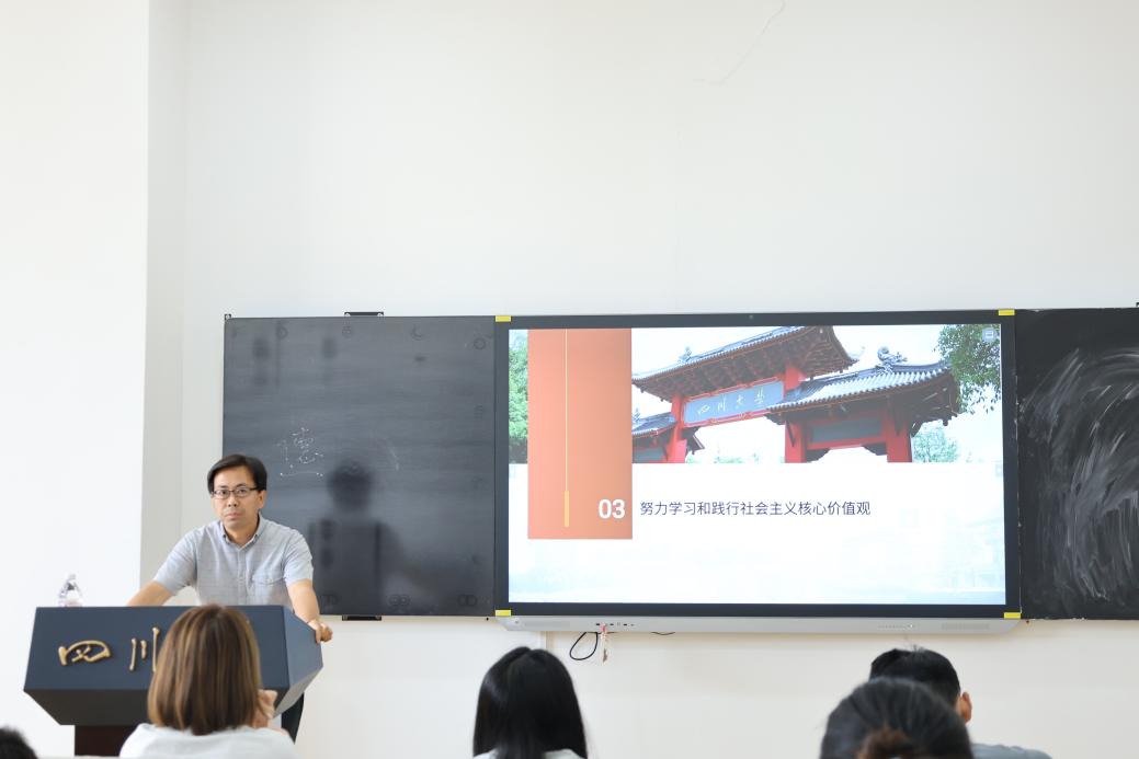 方云书记进一步讲到,价值观是一个人的精神支柱,是人们对事物价值大小进行评价的根本认识和态度,是人们心中深沉的信念,是生活中判断是非的标准,是每个人行动的准则,不能错误,也不能缺失。他还强调,知识和品德是树立社会主义核心价值观的重要基础,作为川大人应勤学、修德、明辨、笃实,时刻保持昂扬向上的精神状态,弘扬以爱国主义为核心的民族精神和以改革创新为核心的时代精神,将社会主义核心价值观内化为精神追求,外化为自觉行动。