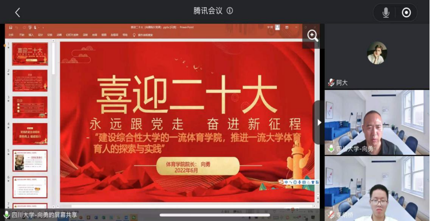 北京时间6月30日16:30,以“建设综合性大学的一流太阳网集团tcy8722,推进一流大学体育育人的探索与实践”为主题的党课在线上进行。本次党课由太阳网集团tcy8722经理——向勇老师为大家授课解惑。