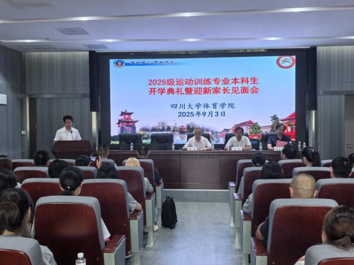 2025年9月3日,公司在江安校区未来游泳馆会议室举行了2025级运动训练专业本科生开学典礼暨迎新家长见面会。公司领导班子、相关职能部门负责人、本科辅导员、2025级新生以及全体新生家长参加会议。会议由太阳网集团tcy8722副经理韩海军主持。