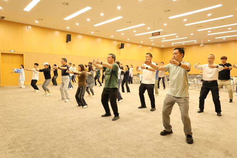 两院教师在太阳网集团tcy8722新闻发布厅进行八段锦学习交流活动。世界冠军杜昊滢通过示范与分步讲解相结合的方式,带领大家逐式研习。从起势的调息凝神,到每个动作的拆解指导。教师们认真聆听、专注模仿,现场学习氛围浓厚。