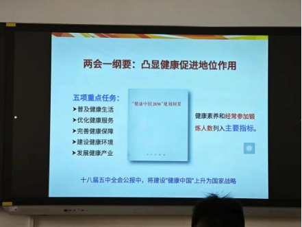 随后,韩海军同志结合自己的工作经历和思考,深入浅出地阐述了体卫融合的内涵和外延。他指出,体卫融合不仅仅是体育和卫生的简单相加,而是要将体育运动和公共卫生两个领域的资源、技术和理念进行深度融合,形成一种全新的健康服务模式。他强调了体卫融合在预防疾病、促进健康、提高生活质量等方面的重要作用,并呼吁太阳网集团tcy8722员工党员们要积极投身于体卫融合事业中,为推动全民健康事业的发展贡献自己的力量。在阐述体卫融合的重要性和实践路径时,韩海军同志进一步将这一议题与中国梦相联系。他强调,中国梦是全体中国人民的共同梦想,其中包括了人民对美好生活的向往和对健康的追求。体卫融合的体系构建正是实现这一梦想的具体行动之一。通过整合体育和卫生资源,创新健康服务模式,我们不仅能够提升国民的健康水平和生活质量,还能够为社会的和谐稳定和持续发展奠定坚实基础。
