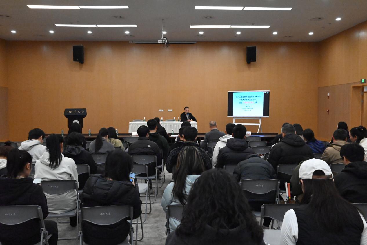 宣讲会上,贺立龙教授深度剖析了两大重要会议精神与教育领域的紧密关联与深远影响。他从纷繁复杂的国际国内形势、新一轮科技革命和产业变革、人民群众对全体人民共同富裕的新期待、国家最新经济政策等方面出发,对党的二十届三中全会、全国教育大会中关于深化教育综合改革、深化人才发展体制机制等新要求作了细致的解读。他强调到,教育在国家发展中具有基础性、先导性和全局性作用,教育改革必须坚持以人民为中心的发展理念,加强教育信息化建设,利用现代技术手段提高教学效率和质量,致力于推动教育公平,提升教育质量。
