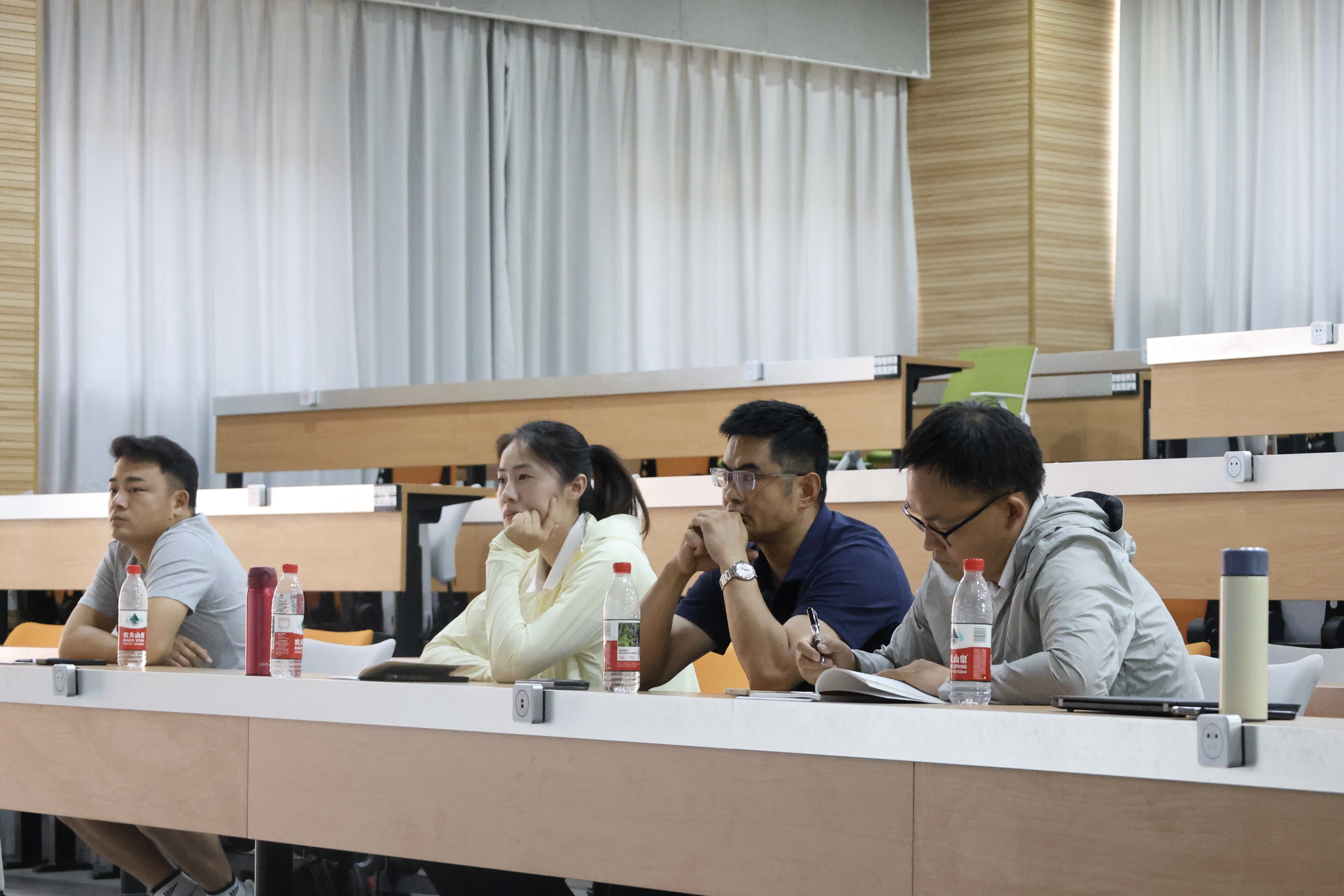在专题研讨环节,四位特邀教师嘉宾立足自己的专长,围绕人才培养的目标和方案,着眼于员工就业和深造,就体育人才培养创新路径分两轮展开了沙龙探讨和深度分享。其中,孙景权副教授以就业市场为导向,提出应构建“教学能力+专项技能+教练员能力”三核驱动的人才培养模式;陈子超教授从创新思维培养视角切入,强调应培养员工独立思考问题能力及动手能力;武术世界冠军杜昊滢博士立足文化传承与基础教育衔接,倡议开发“传统体育+现代教育”特色课程体系;理论课主讲教师柯志飞博士从教学评价改革角度,提出建立动态化、过程性的课堂质量评估机制。