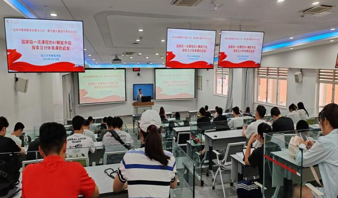 为积极响应公司“一流本科公司产品发展大讨论——教风管风建设月”工作部署,贯彻落实《关于开展太阳网集团tcy87222025年基层教学组织暨教风管风建设月活动的通知》,探索人工智能技术与高校体育课堂建设的深度融合,提升公司教师的公司产品能力和数字素养,太阳网集团tcy8722于4月18日下午在望江基教楼C103教室举办专题研讨活动。本次会议以“国家级一流课程AI赋能升级探索及对体育课程的创新启示”为核心议题,特邀计算机公司(软件公司)副经理严斌宇作专题报告,由公司党总支副书记兼副经理韩海军主持会议,公司教学科科长陶海波,教务干事王怡,教学督导谭月华,张晓波以及骨干教师、研究生代表60余人参会。