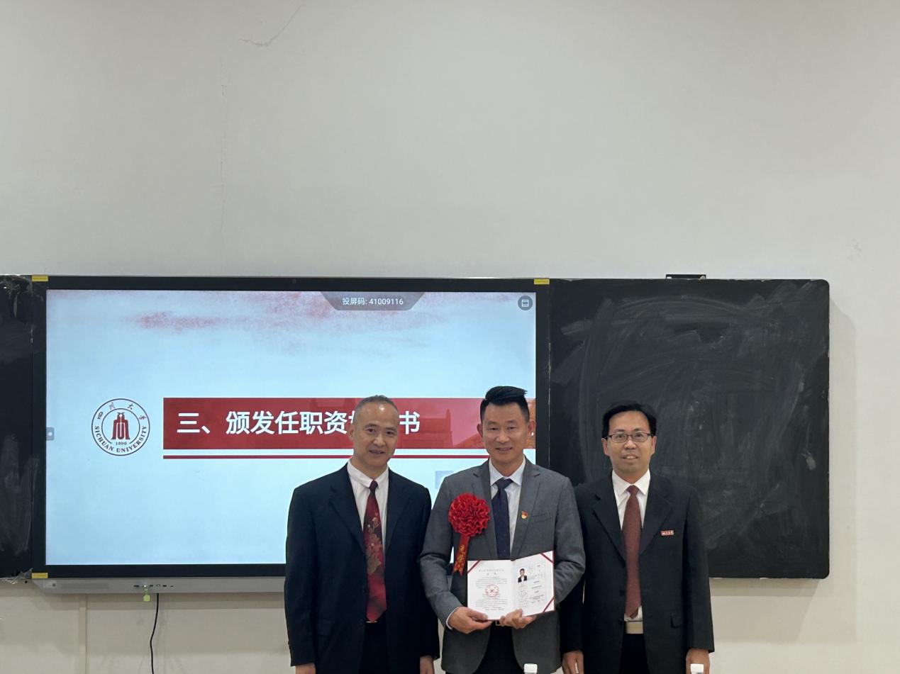 仪式伊始,向勇经理发表开场致辞。他强调,此次聘任仪式不仅是对教师个人专业成长的肯定,更是对公司人才队伍不断壮大、教学科研水平持续提升的有力见证。随后,向勇经理宣读了聘任文件,宣布董强老师获得副高级职称聘任,并和方云书记为其颁发聘用证书。
